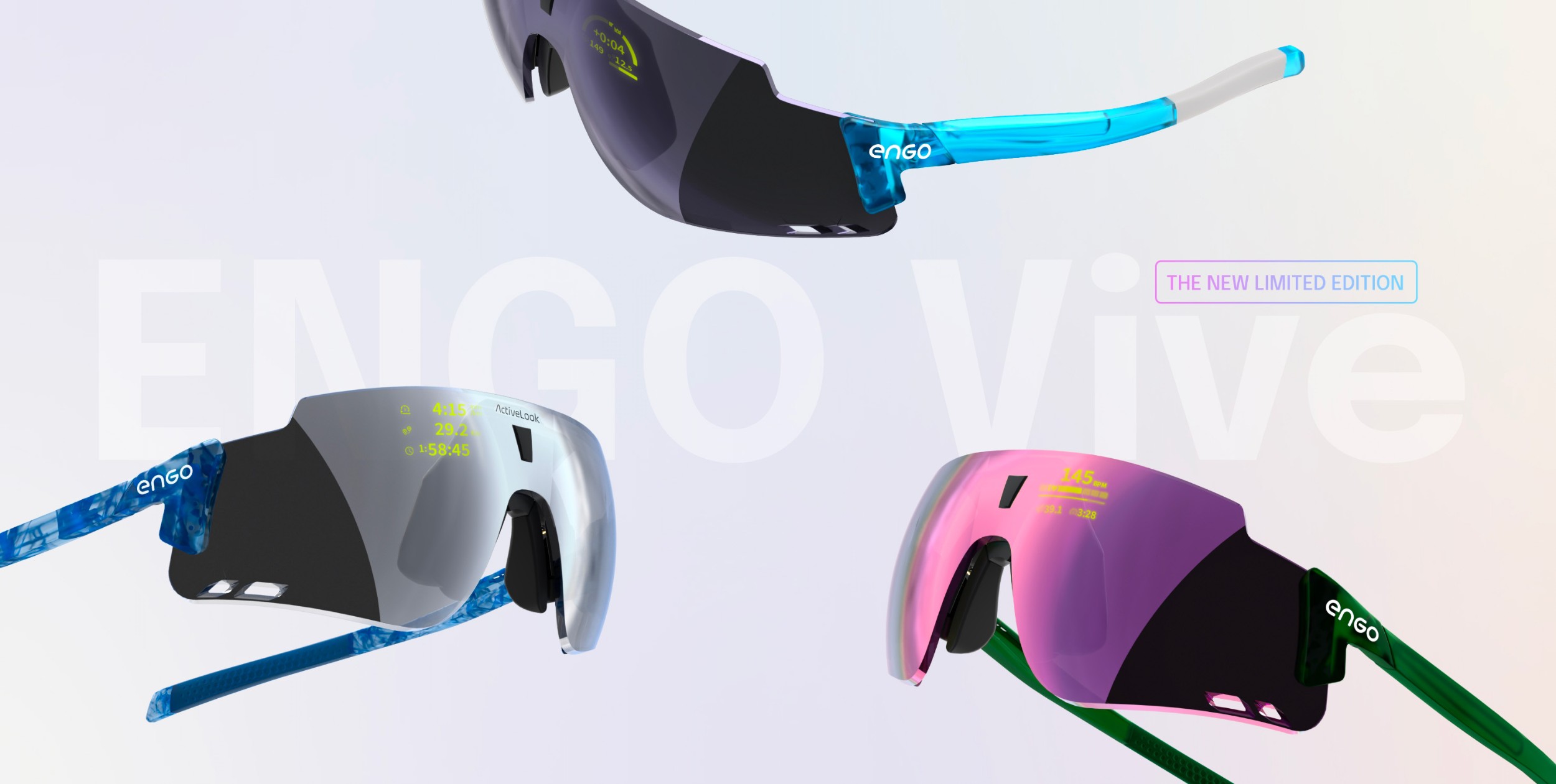 L’édition limitée ENGO Vive est disponible en trois coloris exclusifs pour s’assurer que vous ferez des jaloux (surtout si vous les battez sur un segment Strava) :